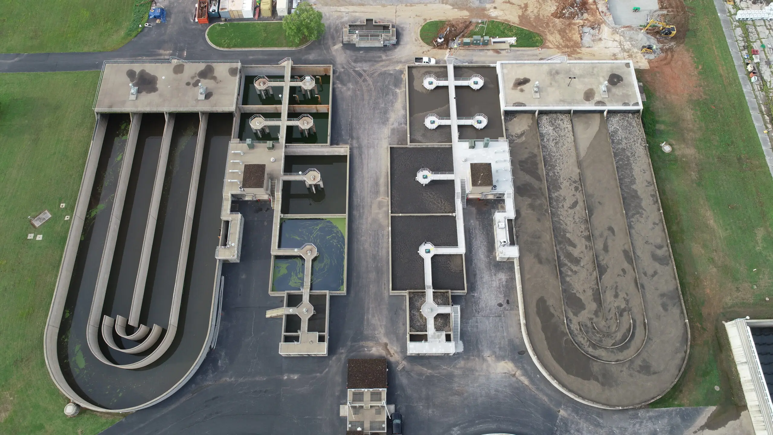 In October 2016, Rogers Water Utilities (RWU) in Rogers, Arkansas, hired Olsson to design a rehabilitation project for their first Bardenpho treatment train. The scope included dewatering and sediment removal of the aeration basin, concrete reinforcement and repair, equipment replacement, electrical work, waterproofing, epoxy coatings, and guardrail and handrail replacement. They procured this project using traditional Design-Bid-Build (Hard Bid) methods and awarded it to the lowest bidder, Crossland Heavy Contractors (CHC), in 2017. The total cost for this project, including engineering fees, was $2.04 Million.