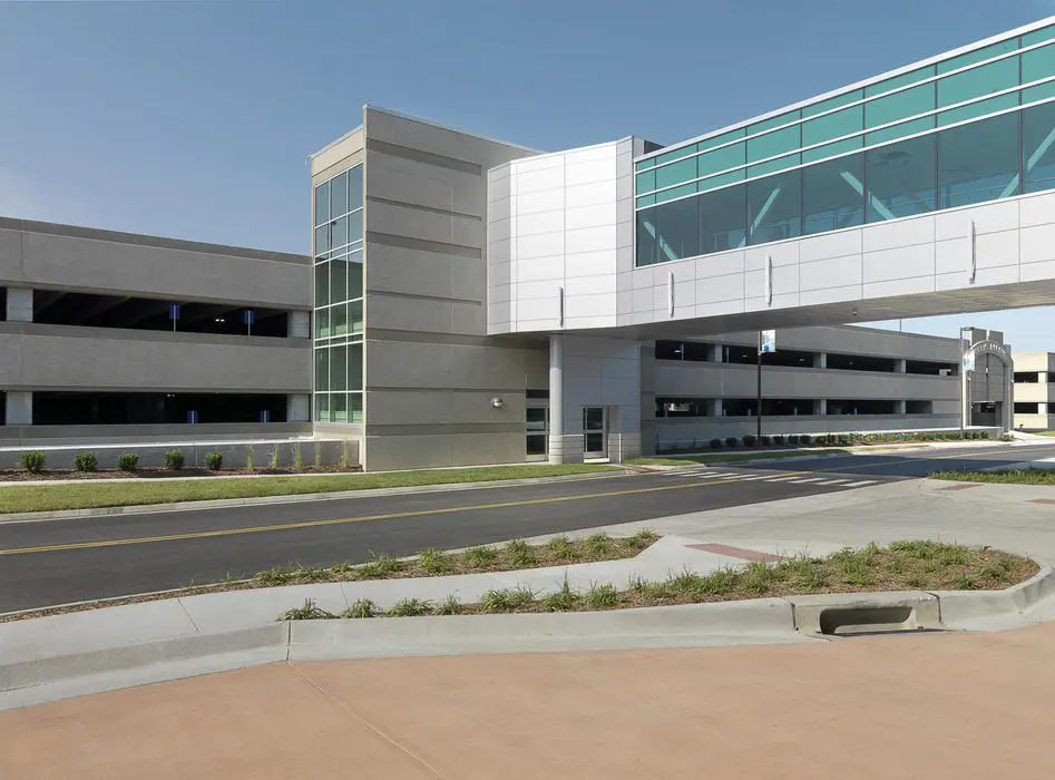 The Kansas University Medical Center Parking Deck consisted of a four-story parking garage that provides an additional 613 parking spaces for the use of employees, visitors, and patients. The structure was made from precast and included asphalt paving.