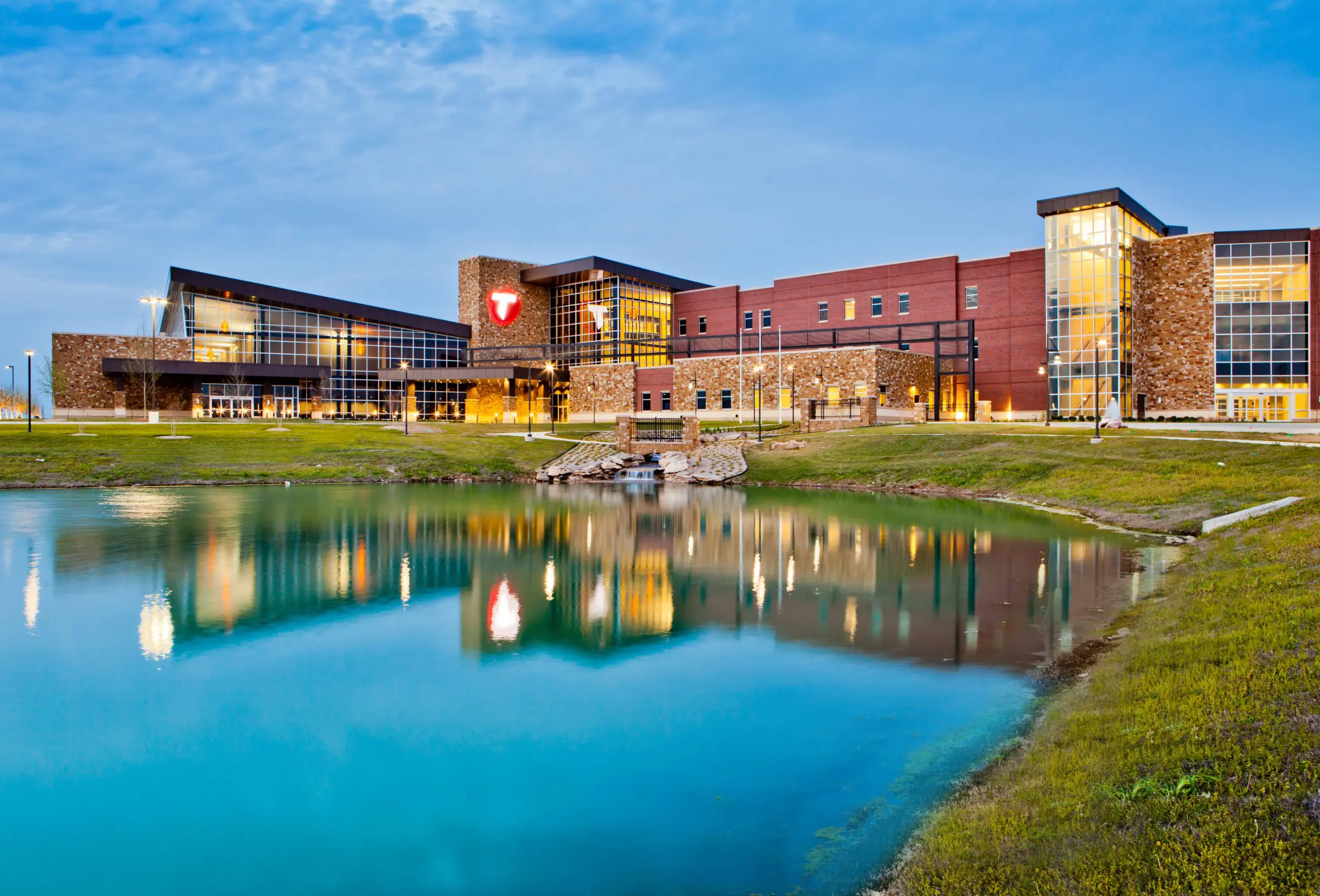 Crossland Construction had the honor of building this 238,000 SF project for Tulsa Tech. The project, which serves as Tulsa Tech’s Owasso Campus is situated on an expansive 55-acre site that Crossland developed using its self-performing teams. The four-story facility includes a community amphitheater, multi-level mezzanines + roof-top patios, classrooms + labs, education conference center, student services space, administrative space, state-of-the-art dining + culinary, education facilities, internet cafe + cafeteria for the general public to utilize, central plant, acres of parking areas, and energy-efficient features: wind, solar, geothermal and gray water recycling.